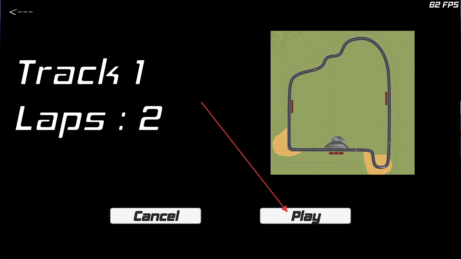 1、查看【Track1】和【Laps2】信息,了解賽道和圈數后,點擊【Play】開始游戲。