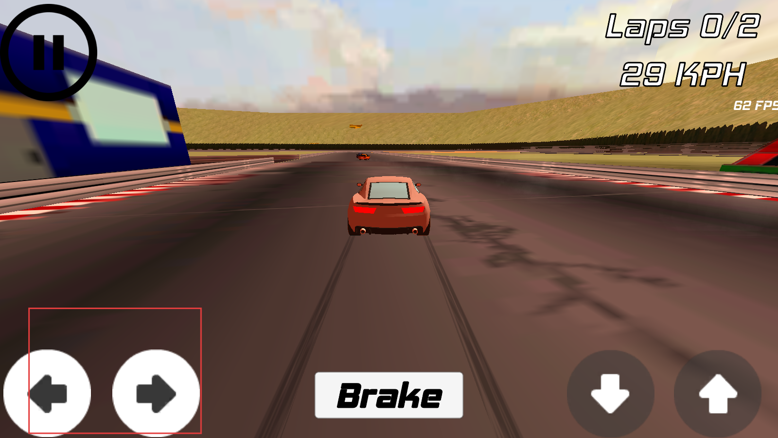 3、注意【Laps02】進度,保持合適車速,在直道加速,彎道合理減速,點擊【Brake】減速,爭取順利完成比賽。