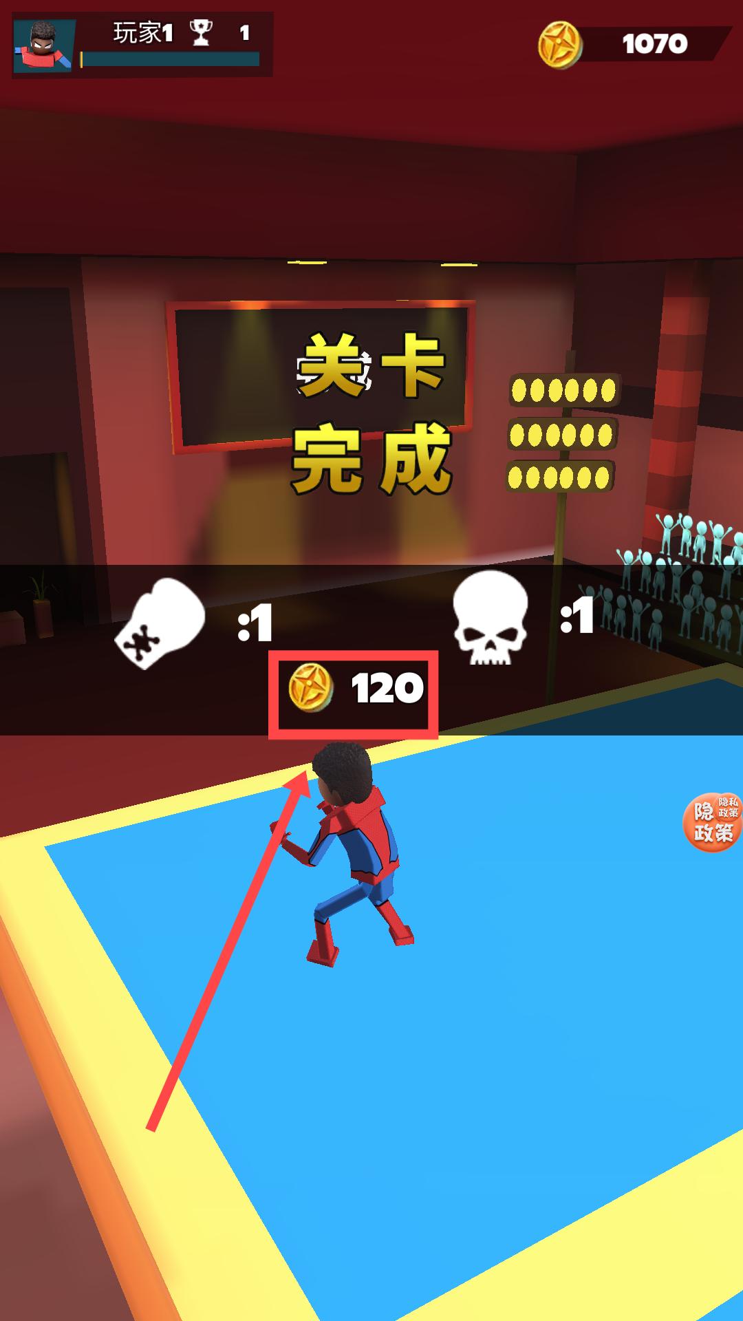 2、通關后,獲取120金幣獎勵,積累金幣可用于解鎖皮膚、升級技能,提升角色戰斗能力。