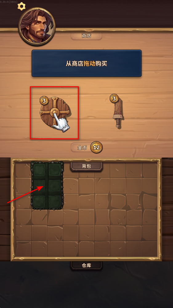 2、商店物品選購從商店拖動盾牌、武器等道具,依據戰斗風格選初始裝備,強化角色攻防能力,構建前期戰斗體系。