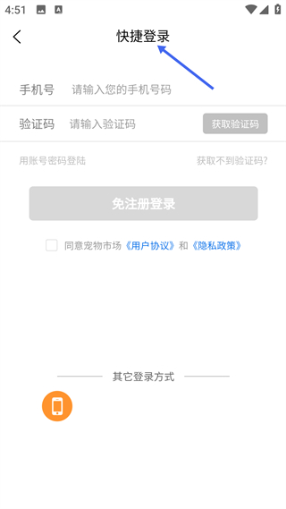 1、快捷登錄頁,采用手機號驗證碼免注冊登錄,需勾選協議,是使用APP功能的前置步驟,保障賬號安全。