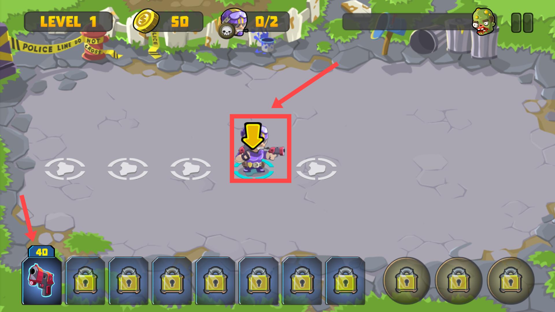 1、排兵布陣筑防線:合理安排警察角色位置,依據其攻擊范圍和能力構建嚴密防御陣線,阻擋僵尸前進路線,抵御一波波的強勢入侵。