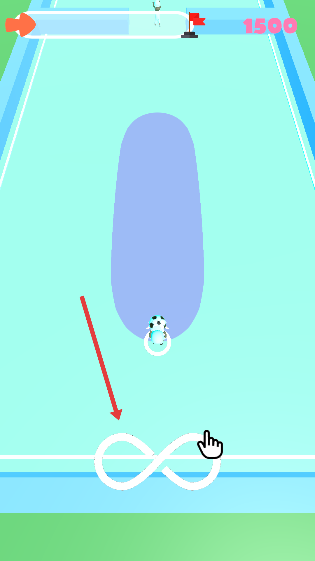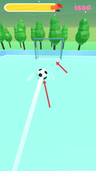 3、在闖關過程中,操控足球避開障礙物,朝著球門方向前進,嘗試將足球踢入球門,完成關卡任務。