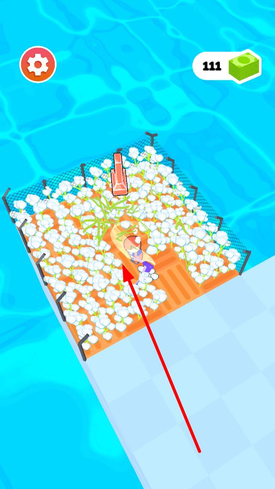 1、來到棉花種植區,跟隨屏幕指引點擊成熟的棉花植株,角色會自動進行采摘,將收獲的棉花儲存到倉庫。
