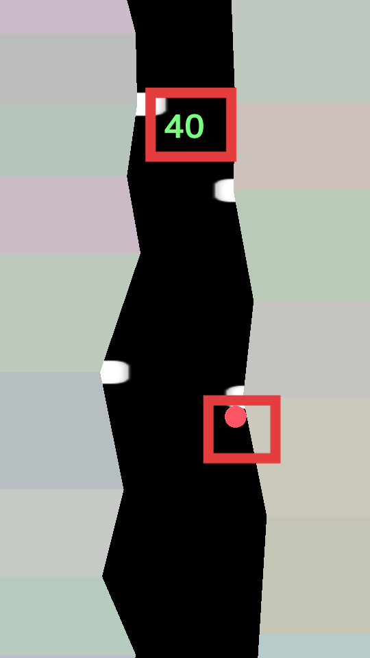 2、通道上方綠色數字顯示當前分數,在游戲內需要注意躲避障礙物,讓小球精準穿過黑色的通道區域,維持行進狀態。