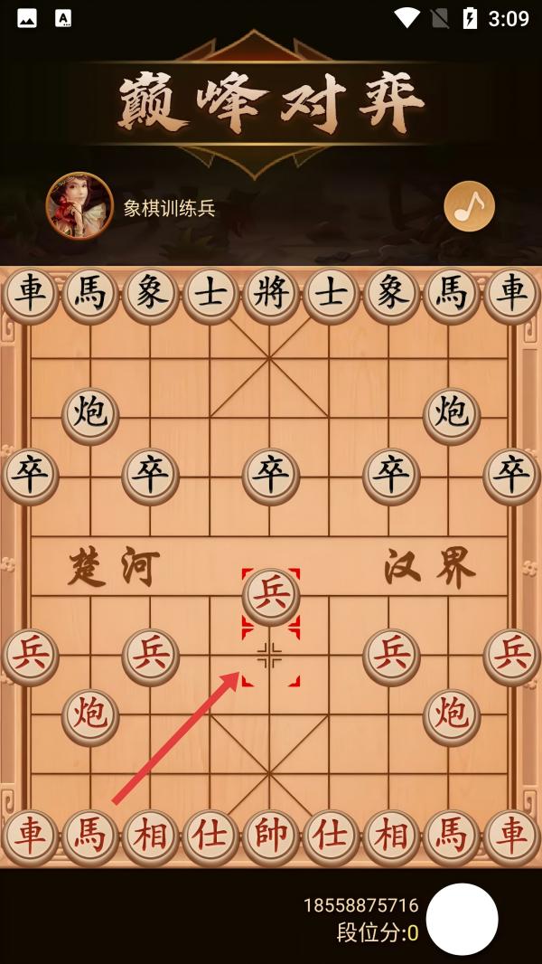 3、進入巔峰對弈棋局后查看棋盤布局,根據象棋規則選擇己方棋子,點擊棋子并拖動至目標位置,完成一步走棋操作,繼續與對手進行對弈,推進棋局進程。