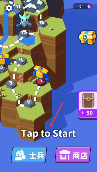 1、進入游戲界面后,點擊Tap to Start按鈕開啟游戲,正式踏入游戲世界,開啟這段冒險征程。