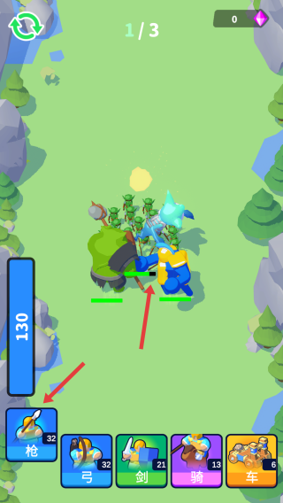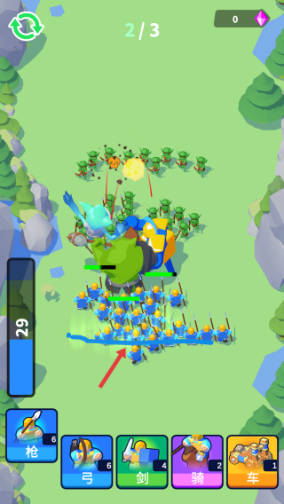 1、收集士兵訓練升級:收集不同兵種的士兵,對他們進行嚴苛的訓練,提升戰斗力并解鎖全新技能,多個兵種各有優劣,比如步兵血厚防高,騎兵機動性強。