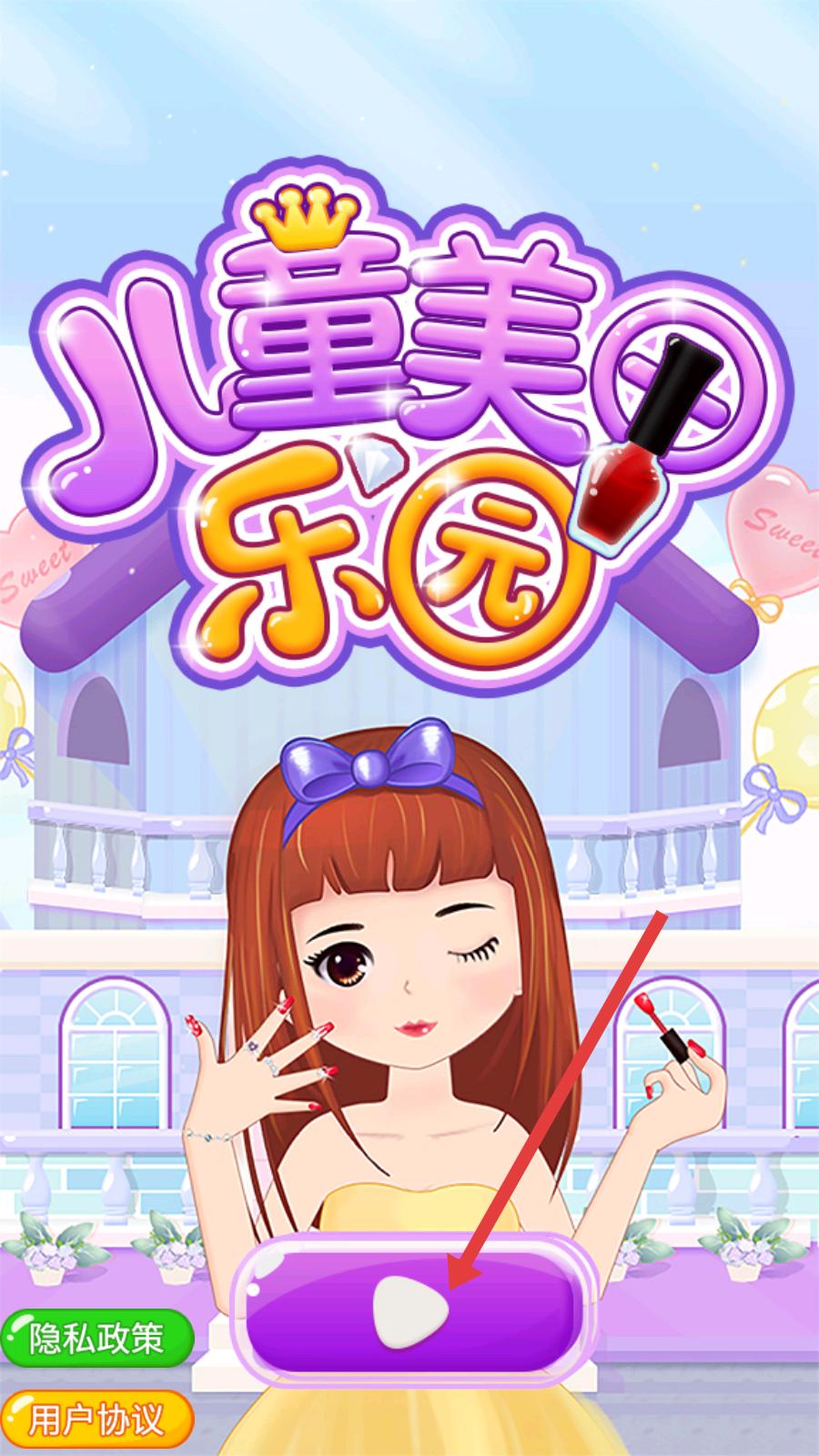 1、在【兒童美甲樂園】游戲啟動界面,點擊紫色帶白色三角形的【開始】按鈕,即可進入游戲,開啟美甲裝扮之旅。
