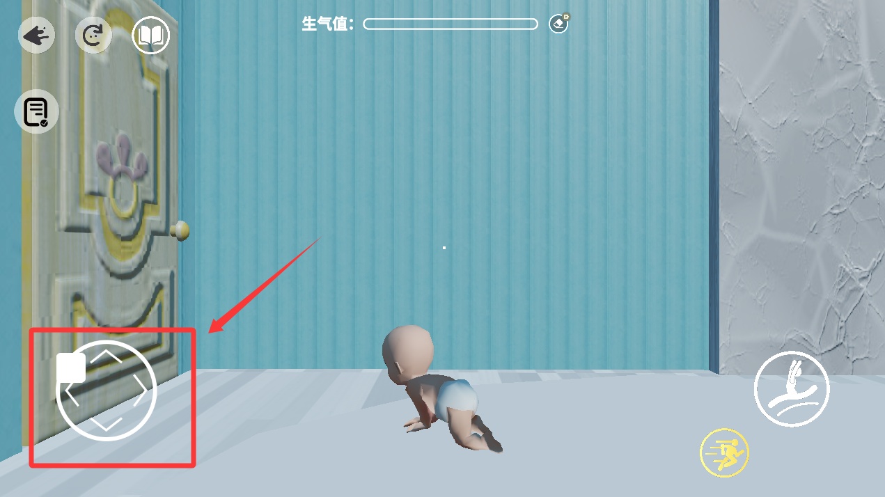 3、左側虛擬搖桿控制父親角色移動,通過上下左右滑動可以快速到達寶寶身邊。注意移動時要避開地上的玩具等障礙物。