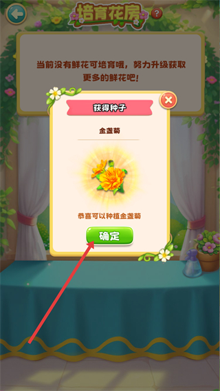 4、可獲得花卉種子,如金盞菊種子,點擊確定后可種植該花卉,努力升級還能獲取更多鮮花種類。