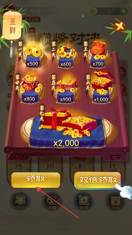 1、進入游戲界面,找到7日簽到活動,依據紅色箭頭指引,點擊領取按鈕,獲取對應天數金幣獎勵,積累資源用于游戲內消費或提升。