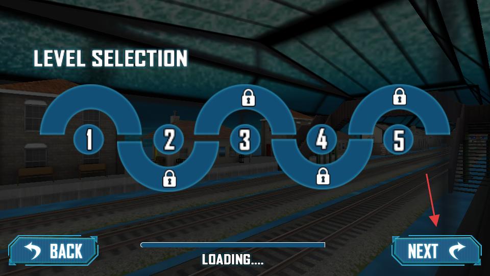 1、在游戲初始界面點擊【START】,進入關卡選擇頁,選Level1后點【NEXT】,開啟水下列車模擬之旅。