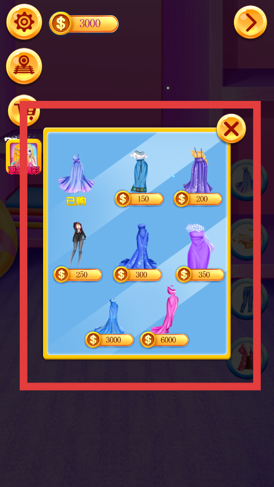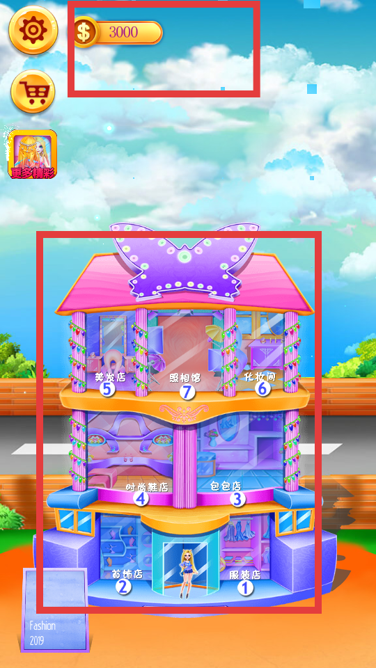 1、查看頂部金幣數量,前往不同樓層店鋪,如服飾店、鞋店等,參與購物、裝扮等互動玩法。