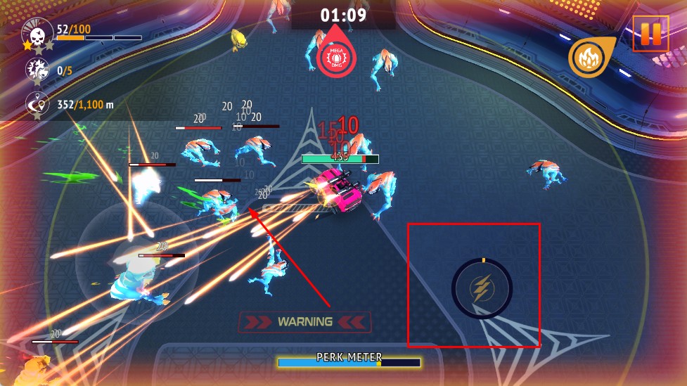 4、遇到敵人時,點擊右側的技能按鈕,賽車會釋放技能,對敵人進行攻擊,消滅敵人,完成任務目標。