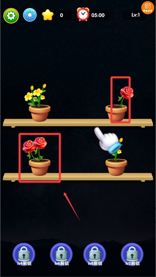 整理我最強是個挺上頭的種花游戲,主要玩法就是把相同顏色的花湊一起。游戲里你會看到各種花盆,里面長著不同顏色的花,你得把同色的拖到同一個盆里,湊夠數就會合成新品種。每關要求都不一樣,有的要你在限定步數內完成,有的要看手速。玩到后面會出一些特殊花朵,比如會變色的彩虹花,得動動腦筋才能搞定。