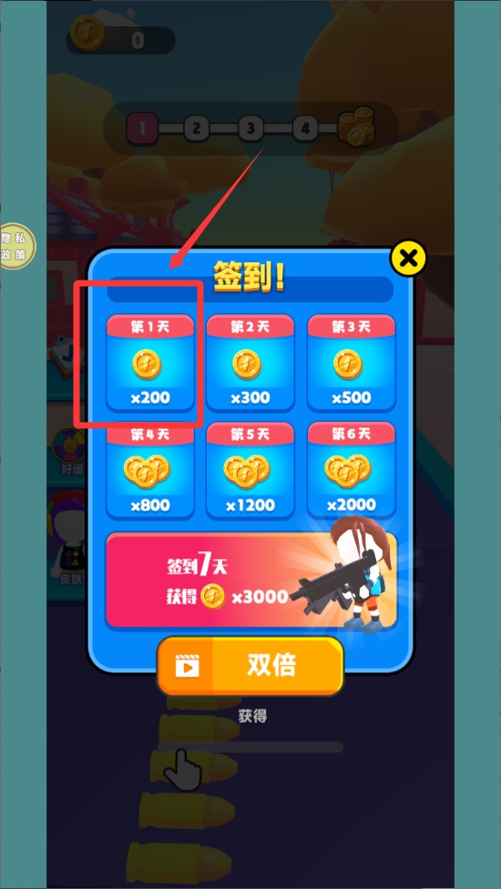 2、在每日登錄界面中,選擇"第一天"選項領取新手專屬武器獎勵,增強初始火力。