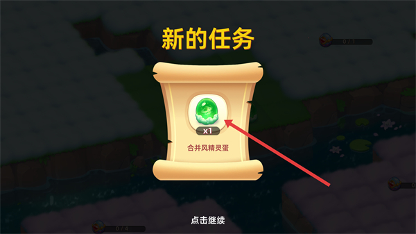 2、會出現新的任務界面,玩家需合并風精靈蛋,點擊繼續可推進任務,開展精靈合并操作。