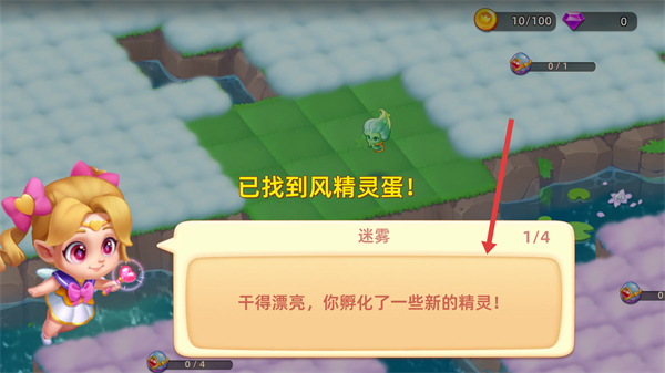 4、孵化風精靈蛋后,會出現提示,玩家成功孵化新精靈,同時推進迷霧清理進度,繼續游戲進程。