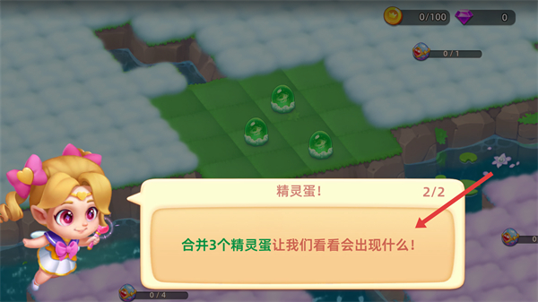 1、合并3個精靈蛋,看看會出現什么,界面顯示精靈蛋數量和任務進度,開啟精靈孵化之旅。