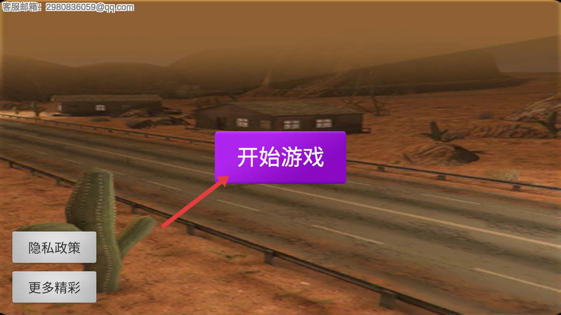 1、點擊開始游戲,進入沙漠主題場景,可先查看隱私政策等,了解游戲基本信息,開啟摩托競速之旅。