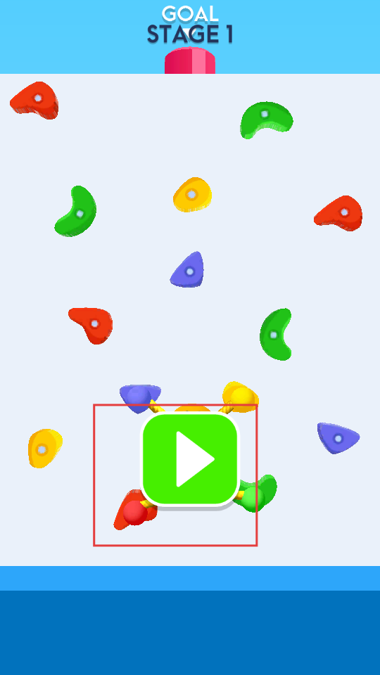 1、在關卡選擇界面,點擊綠色播放按鈕,進入第1關攀巖場景,操控角色攀爬。