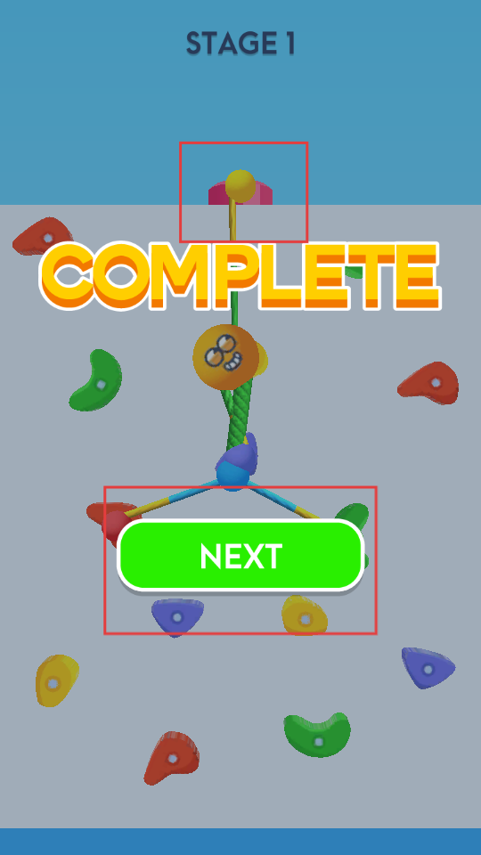 3、關卡1完成后,點擊綠色NEXT按鈕,進入下一關,開啟新攀巖挑戰。