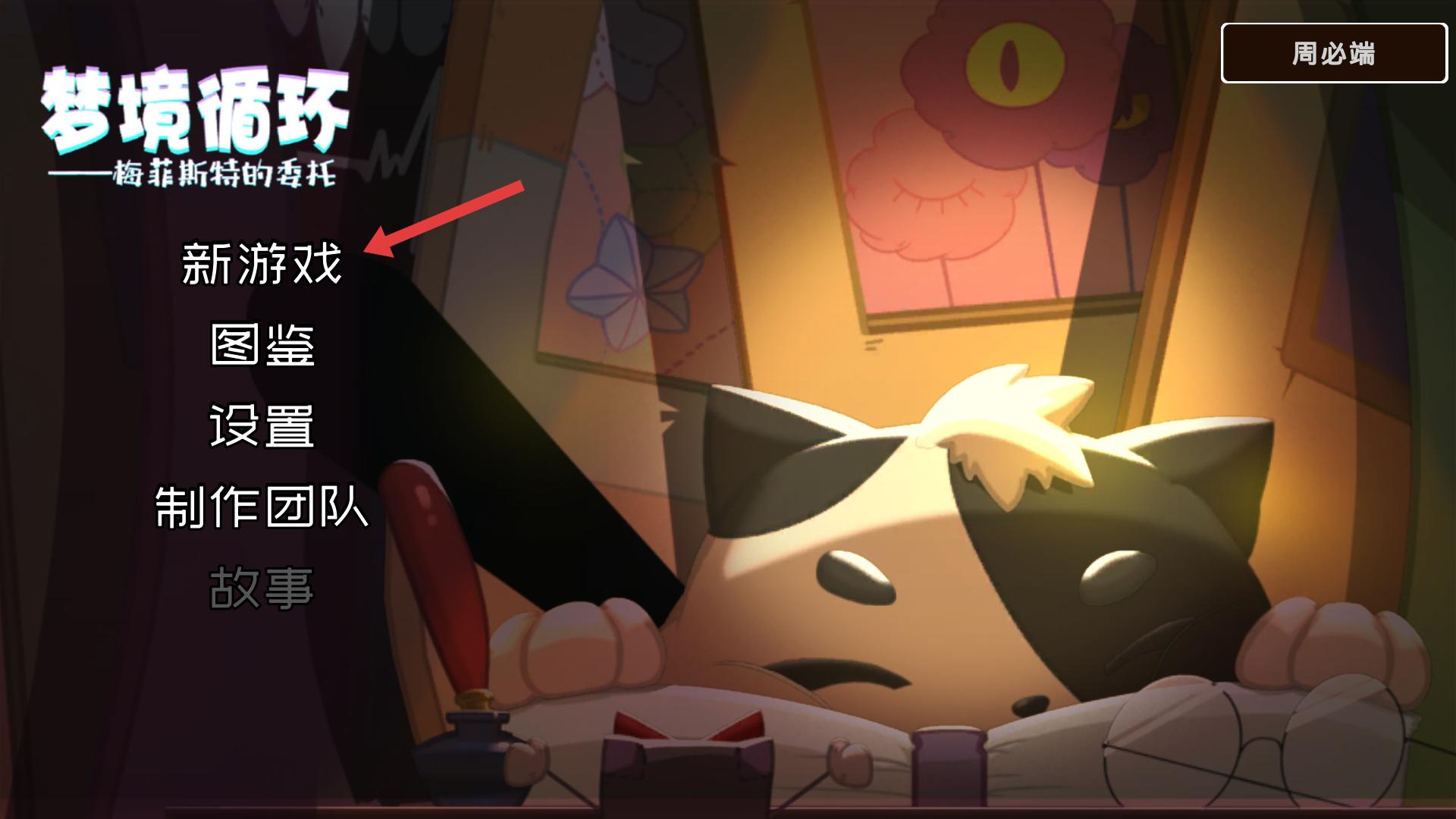 1、點擊新游戲,開啟冒險,進入奇幻貓咪故事,可先查看圖鑒、設置,熟悉基礎功能。