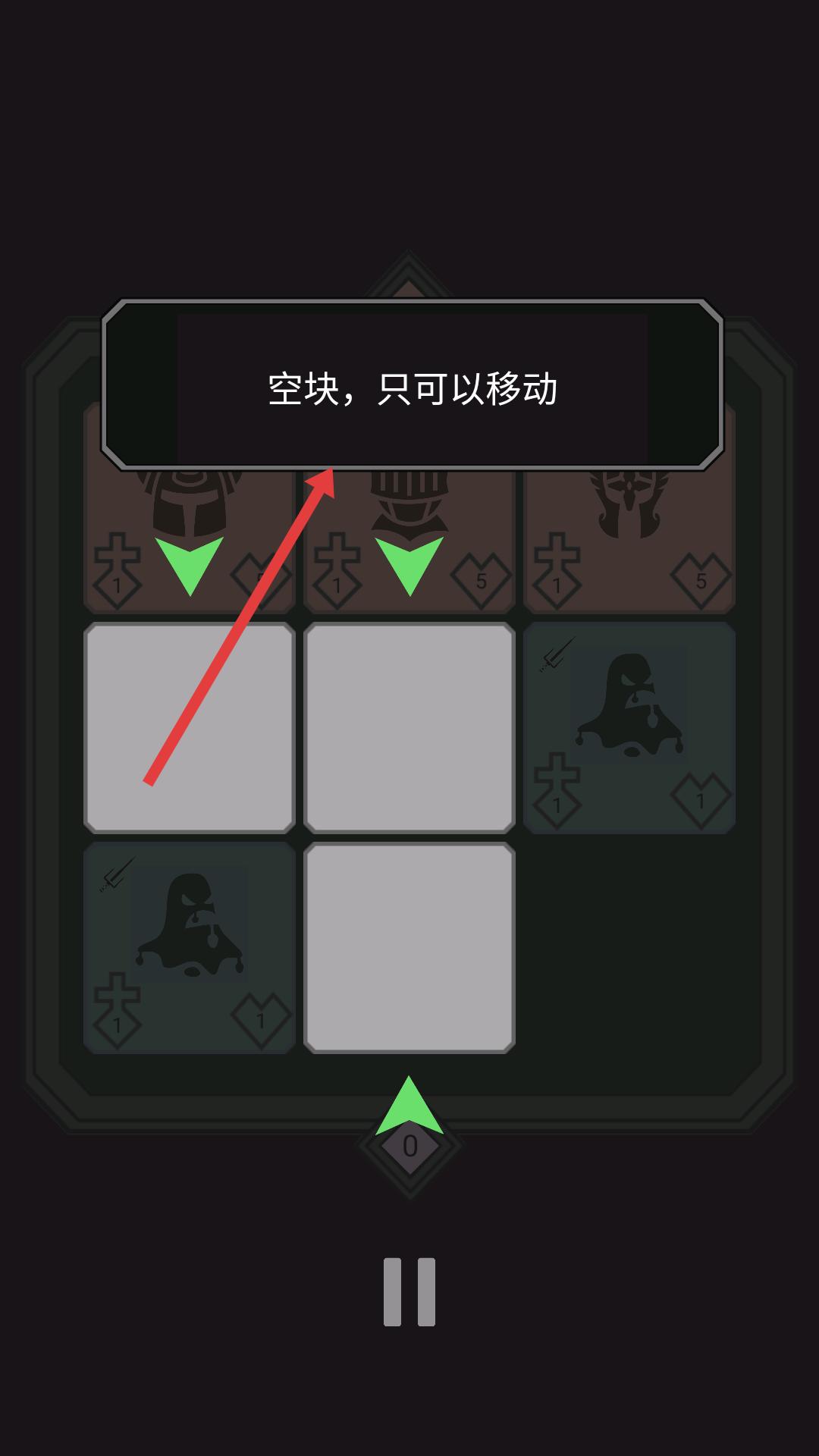 1、遇到空塊只可以移動提示,留意空塊位置,規劃移動路徑,讓可移動角色借助空塊調整站位,應對敵人。