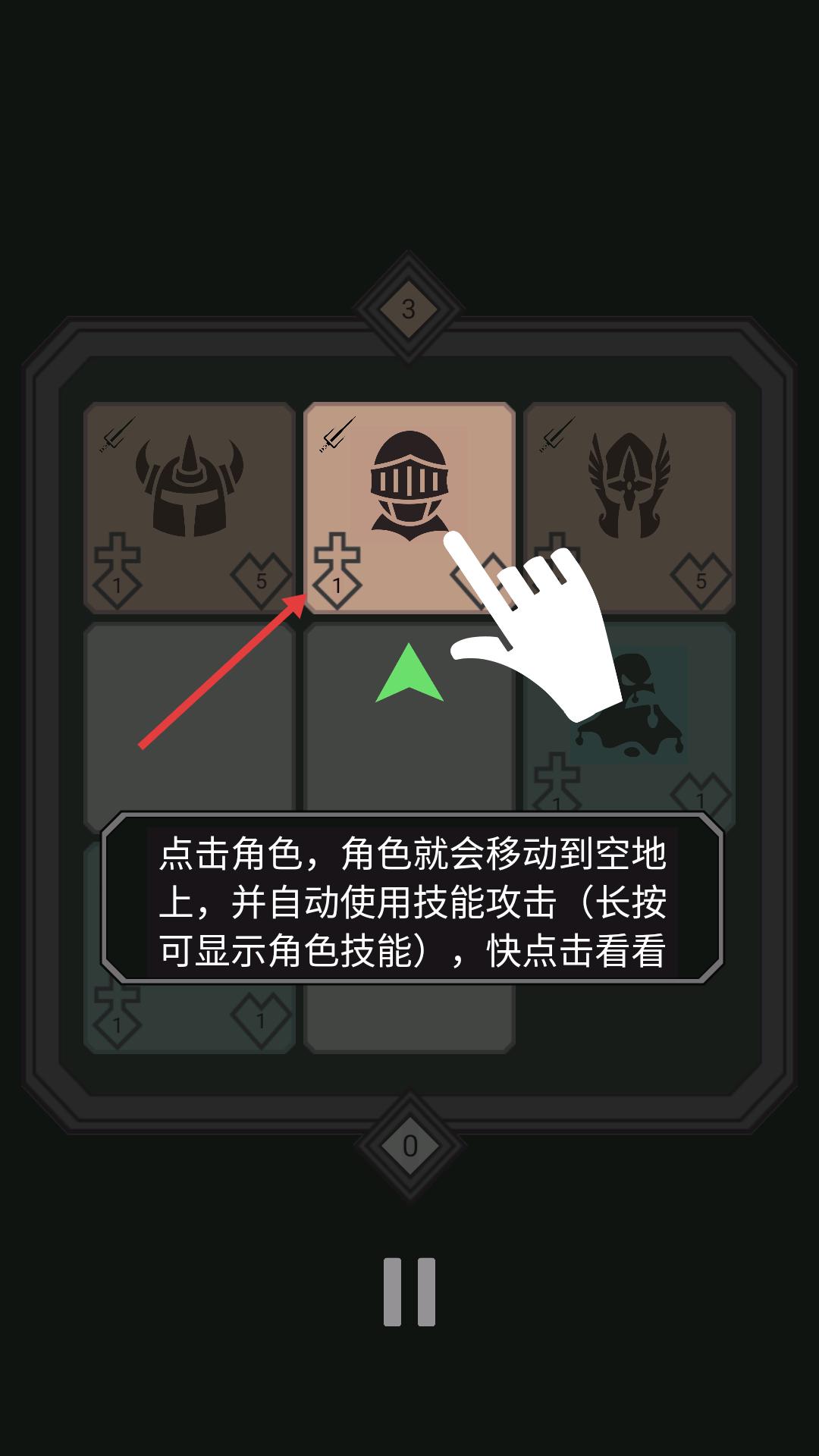 2、點擊角色,使其移動到空地并自動攻擊,長按可查看技能,根據敵人布局,選合適角色出擊,高效清敵。