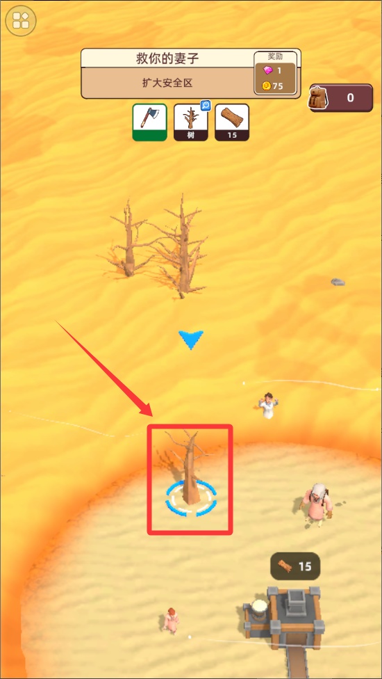 3、前往地圖標記區域檢查散落的木材資源,靠近時會顯示可采集提示,持續按住互動鍵即可將木材收入背包。