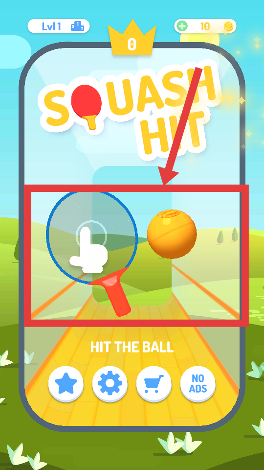 1、進入游戲界面看到球拍和球,按照指引用手指滑動球拍,準備擊打球開啟游戲。