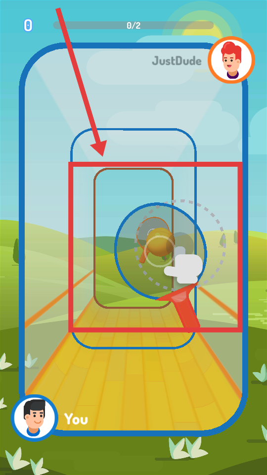 2、游戲中與對手對戰,觀察球的軌跡在合適時機滑動球拍,將球擊入對方區域爭取得分。