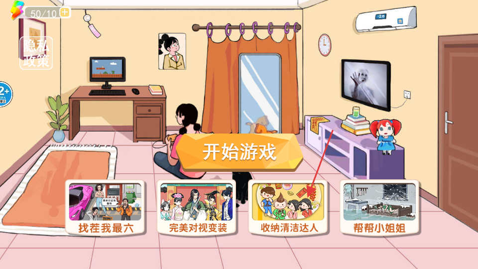 1、進入佳作主界面,溫馨房間場景中,有多個游戲選項,點擊開始游戲按鈕,進入關卡選擇頁面,準備挑選創意關卡。