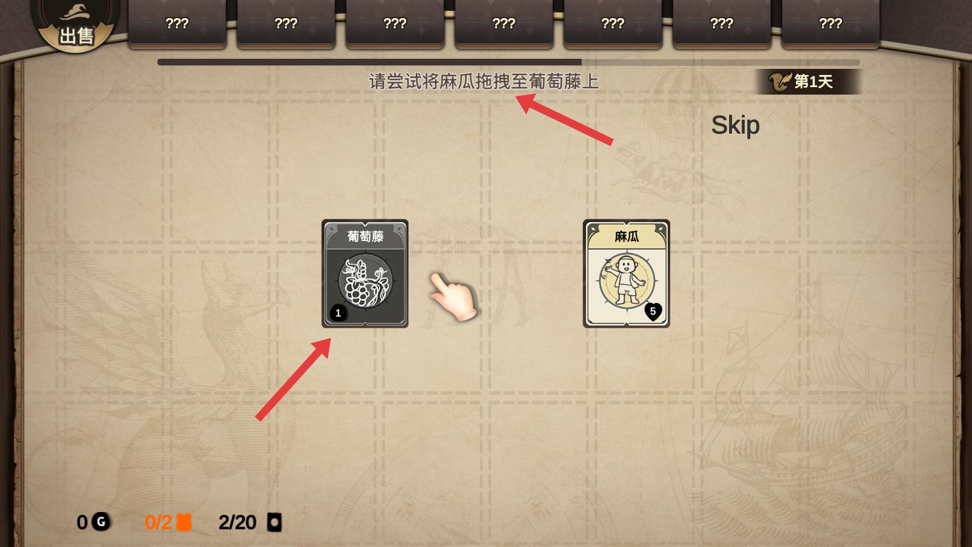 1、按提示,將麻瓜卡牌拖拽至葡萄藤卡牌上,完成操作,推進第1天的任務流程。