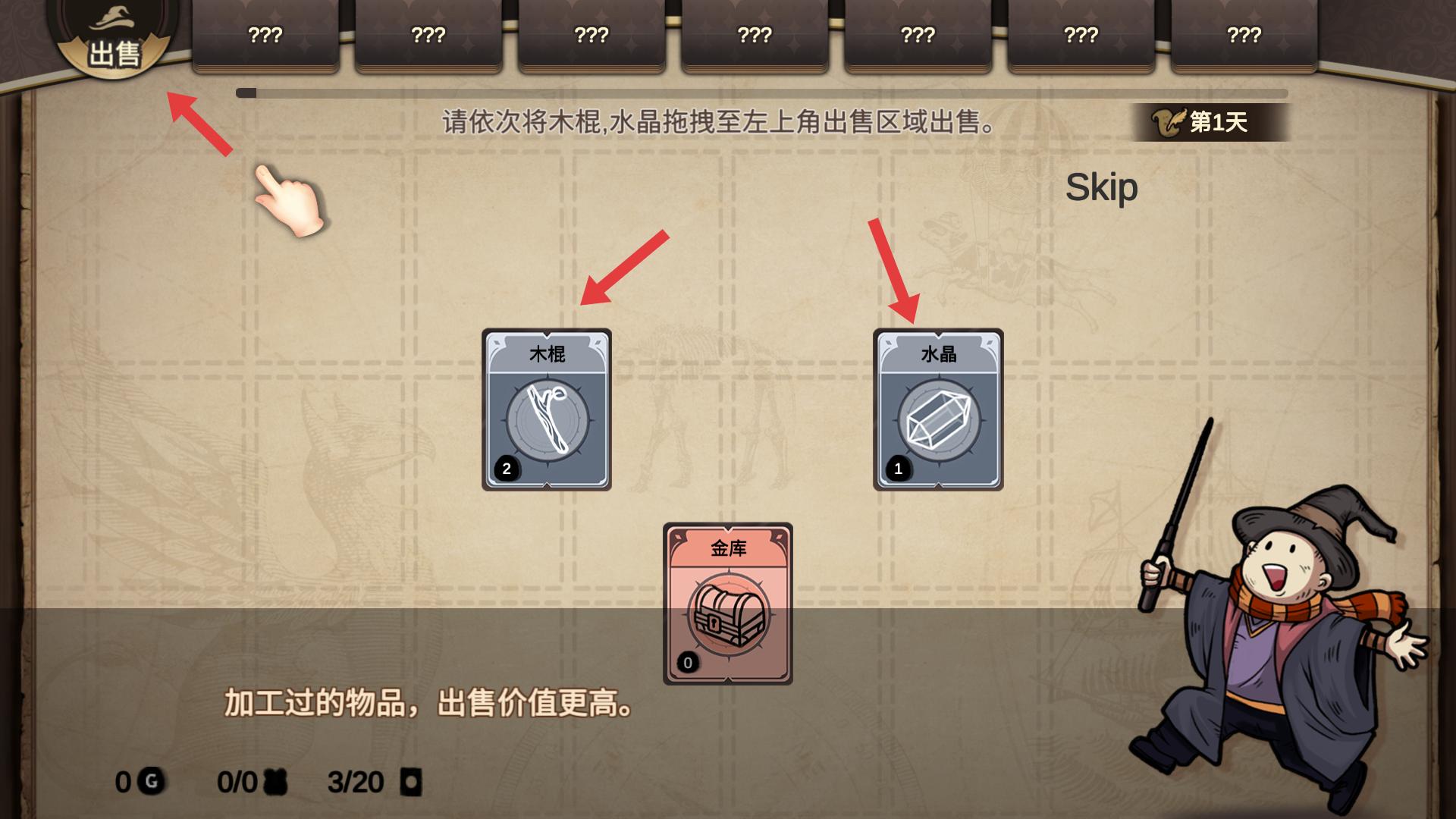 2、依次把木棍、水晶卡牌拖到左上角出售區域,完成出售,獲取資源,注意操作順序。
