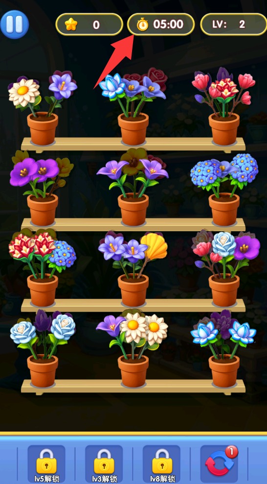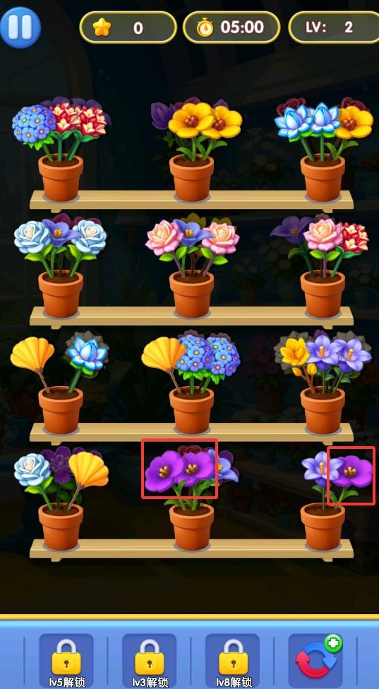 1、核心玩法簡單易上手,滑動連接相同花卉即可消除,但要注意特殊障礙物如帶刺玫瑰會限制移動方向,需要巧妙規劃消除路徑。