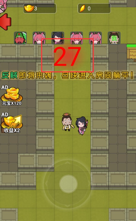 3、成功躲藏后點擊床鋪進入發育狀態,消耗金幣招募守衛、升級防御設施,逐步強化生存能力。