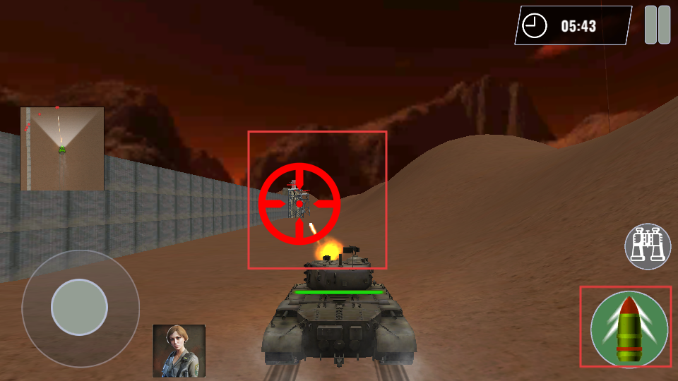 2、瞄準敵方目標,點擊炮彈按鈕發射炮彈,攻擊敵方坦克或其他目標,推進戰斗進程。