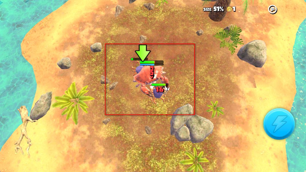 3、游戲里存在其他生物,操控螃蟹與它們進行戰斗,在戰斗過程中要注意自身的生命值,成功擊敗對手可讓螃蟹獲得成長。