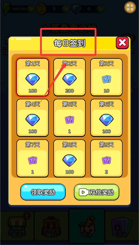 2、前往活動中心領取每日簽到獎勵,包含強化石與金幣等有助于戰力提升的資源。