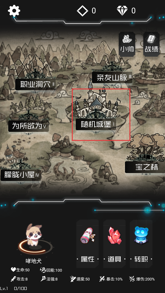 1、選擇隨機城堡等場景進入戰斗,操控角色哮地犬,利用其攻擊、法強等屬性,與敵人展開對抗。