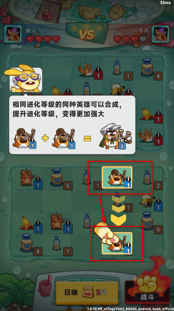 3、若有相同進化等級的同種英雄,可將它們進行合成,以此提升英雄的進化等級。