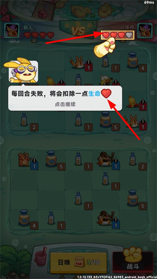 2、每回合失敗會扣除一點生命,需合理布置寵物陣容,避免生命扣除,保障戰斗的持續進行,提升勝利概率。