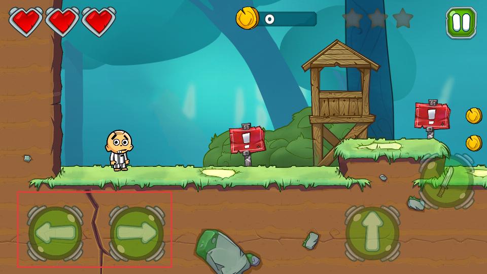 1、點擊左右方向鍵,操控角色在場景中移動,探索不同區域,接近可能存在金幣或其他元素的地方。