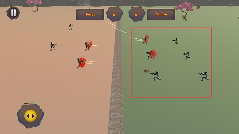 2、點擊PLAY開始戰斗,操控己方火柴人士兵,與敵方如德國陣營的士兵交戰,利用兵種特點進行攻擊。