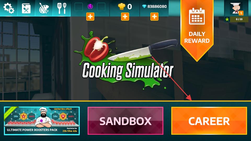 1、在游戲主界面,想挑戰生涯模式,點擊橙色CAREER按鈕,進入廚師職業旅程,完成任務提升廚藝。