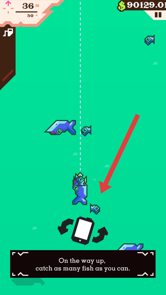 2、當魚鉤下沉到一定深度后會開始上升,在魚鉤上升的過程傾斜設備控制魚鉤去接觸并捕獲盡可能多的魚,捕獲的魚越多獲得的金錢獎勵也就越多。