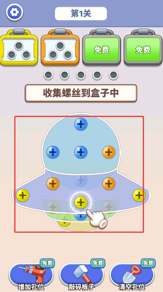 2、仔細觀察上方顯示的目標顏色,找到并擰下相同顏色的螺絲即可得分。