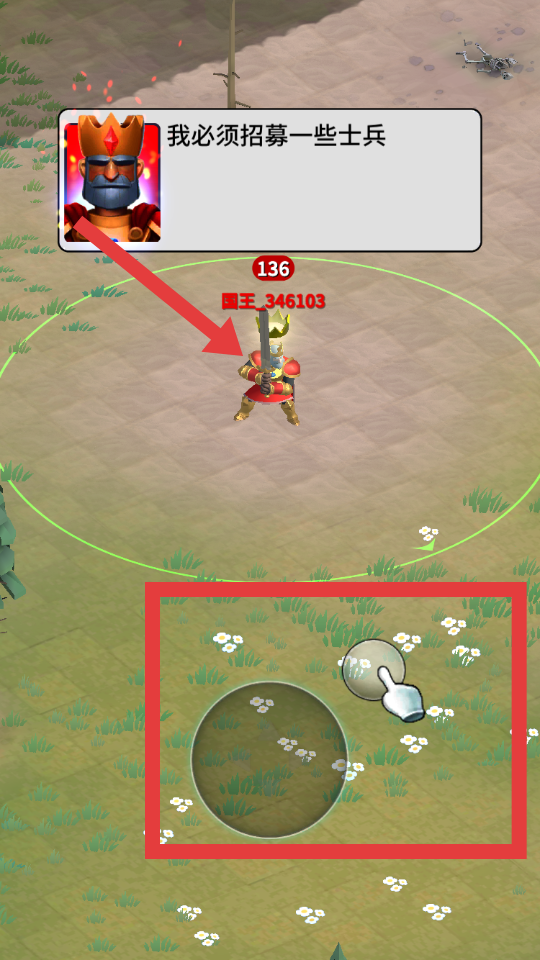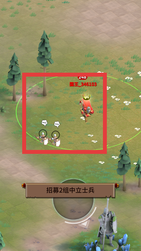 1、玩家下載游戲之后然后點擊進入,玩家操控角色通過點擊操作招募中立士兵,壯大自己的隊伍,為后續戰斗儲備力量。
